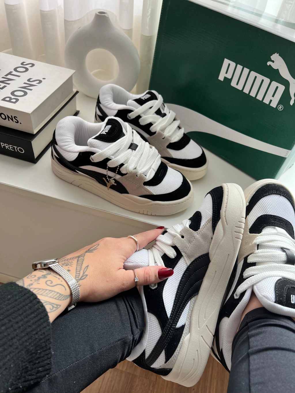 -Cadarços premium (modelo fat lace) o melhor do mercado;